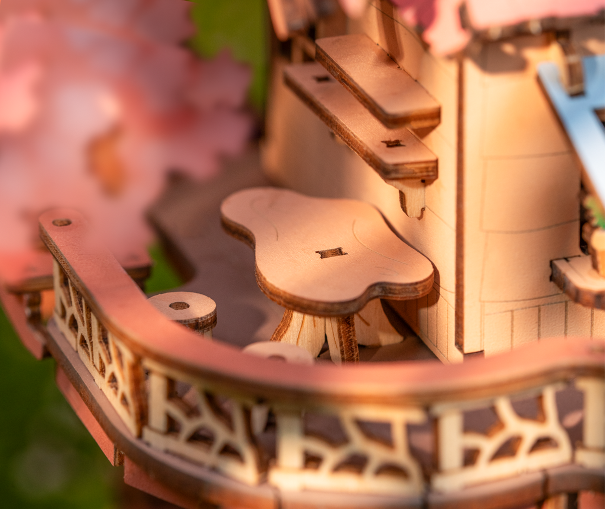 De Sakura Tree House is een houten 3d puzzel en bestaat vooral uit roze houten bouwplaten en is geschikt vanaf de leeftijd van 14 jaar en ouder.