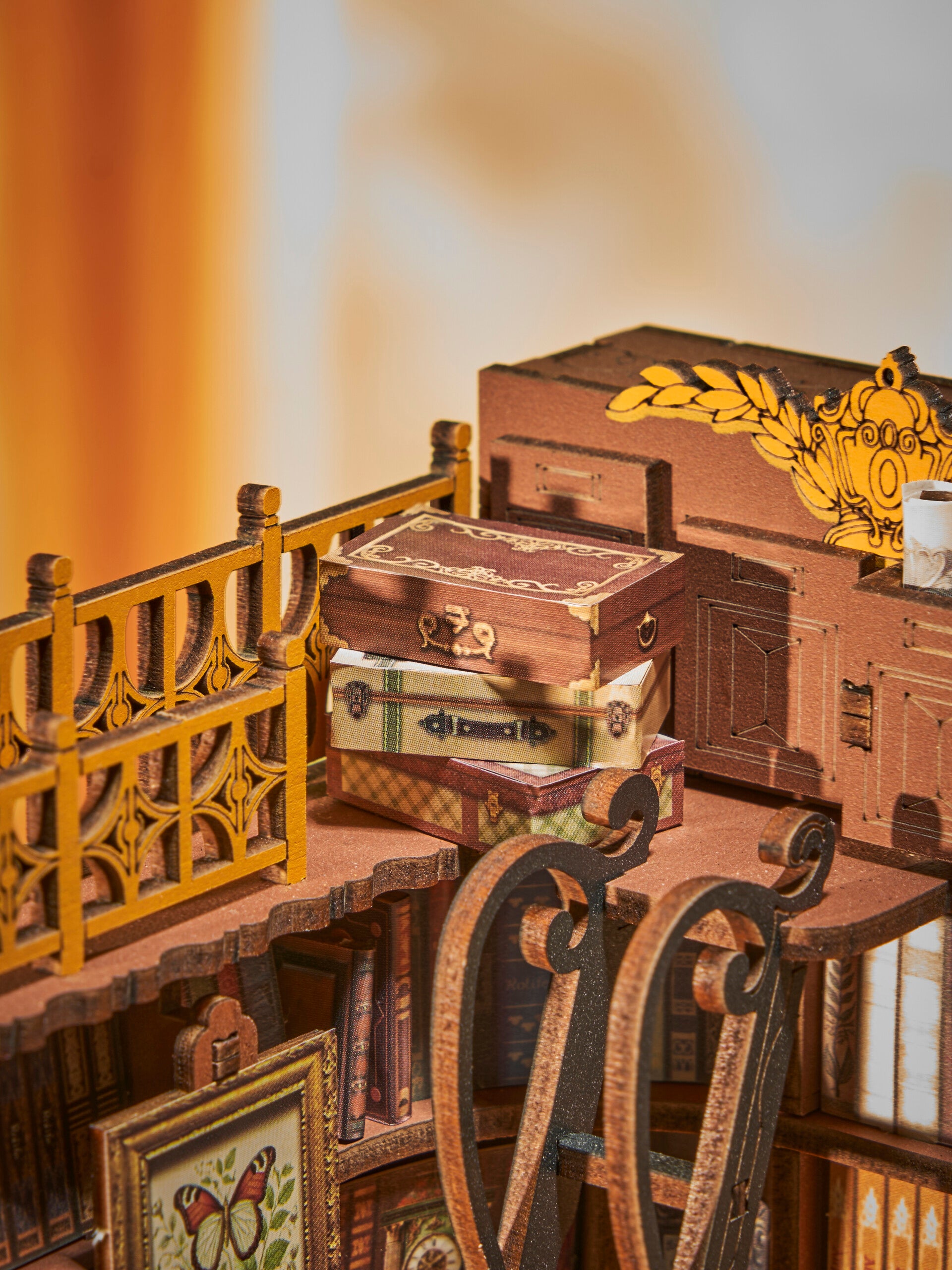 De Silent Corner Study is een leuk houten bouwpakket geschikt voor bouwers vanaf 14 jaar en ouder. Het houten bouwwerk betreft een kleine stil hoekje van een bibliotheek vol met gevulde boekenkasten en een lekkere schommelstoel en de bibliotheekladder wat het maakt als een echte bllikvanger.