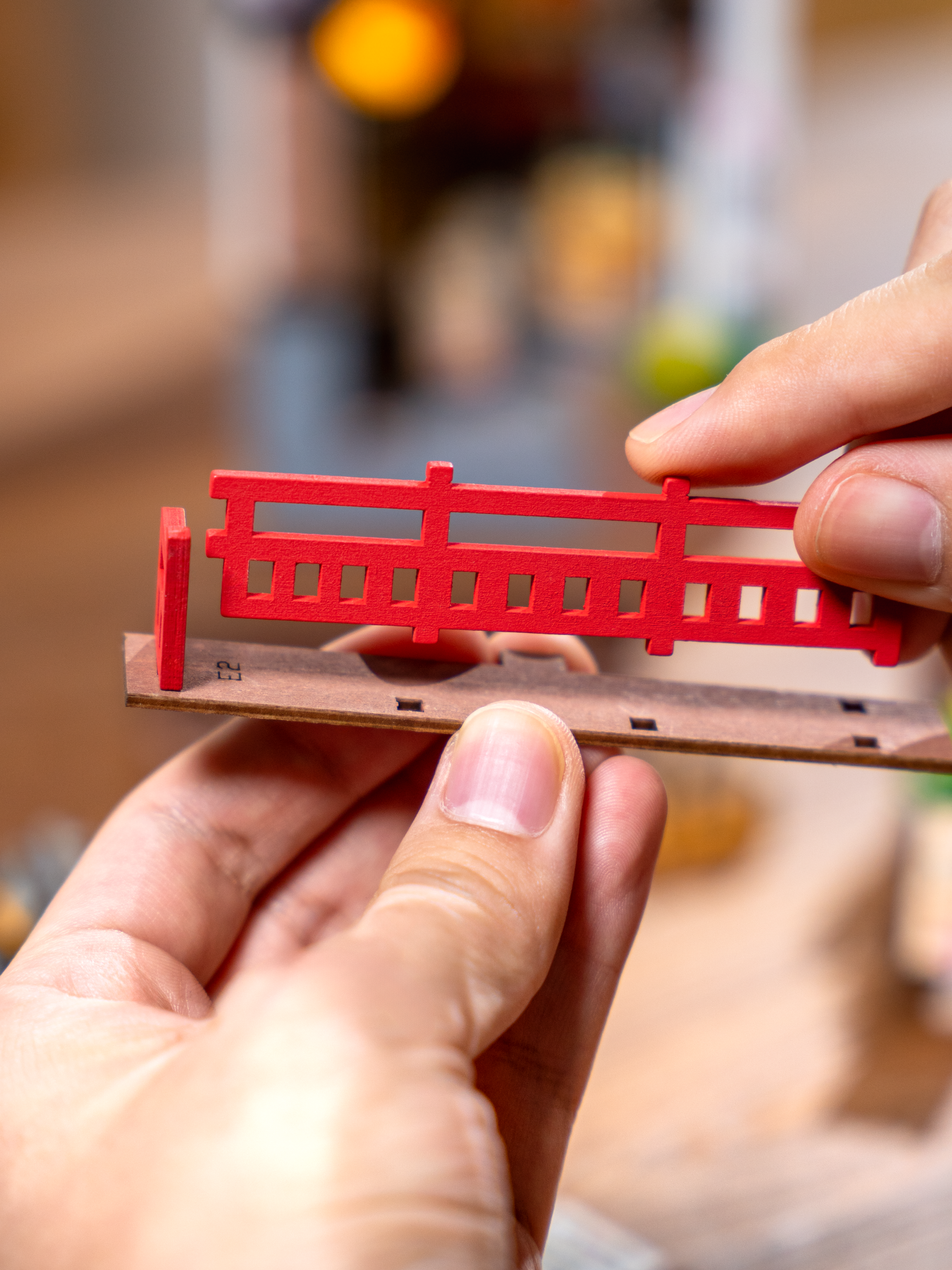 Dit steegje is ruim 22 cm hoog en 19,5 cm diep en heeft 249 houten bouwstukken, is geschikt voor de gevorderde bouwer.