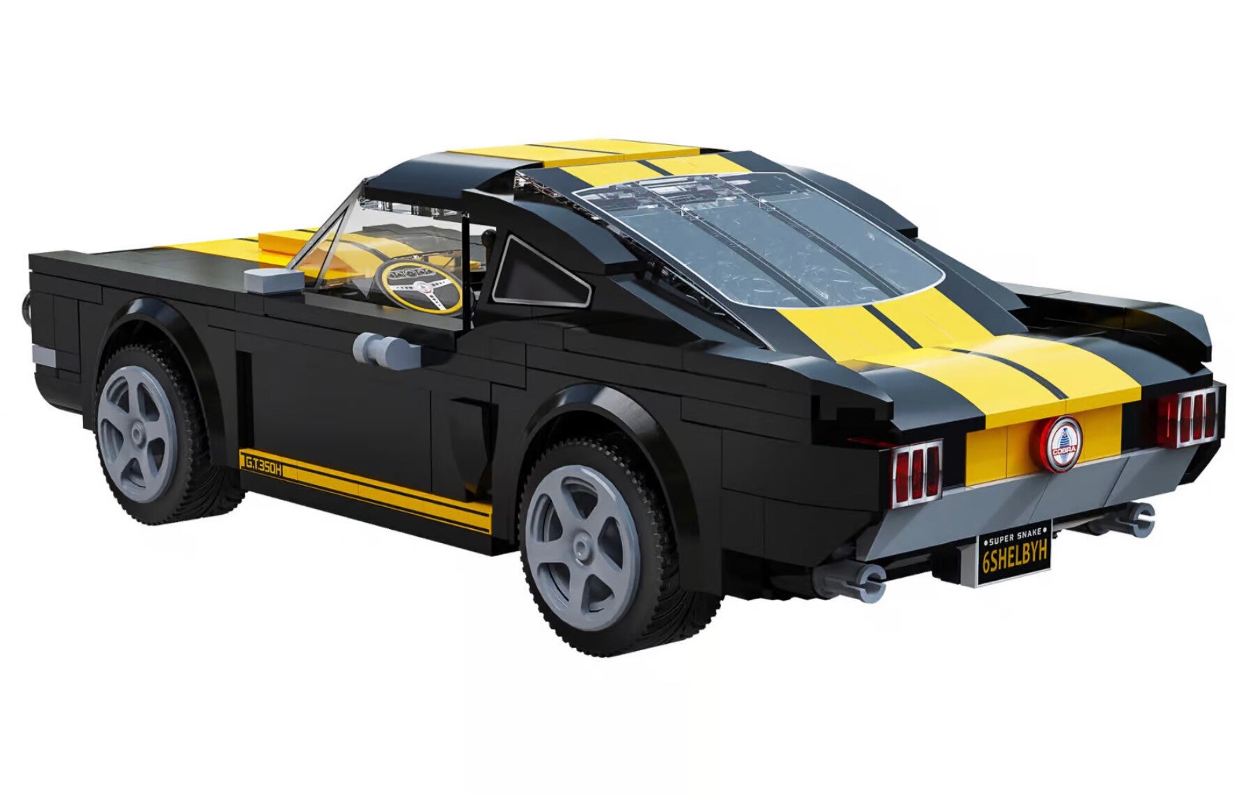 Stap voor stap zie je de Shelby GT350H tot leven komen – een iconisch model dat snelheid, stijl en Amerikaanse kracht combineert.